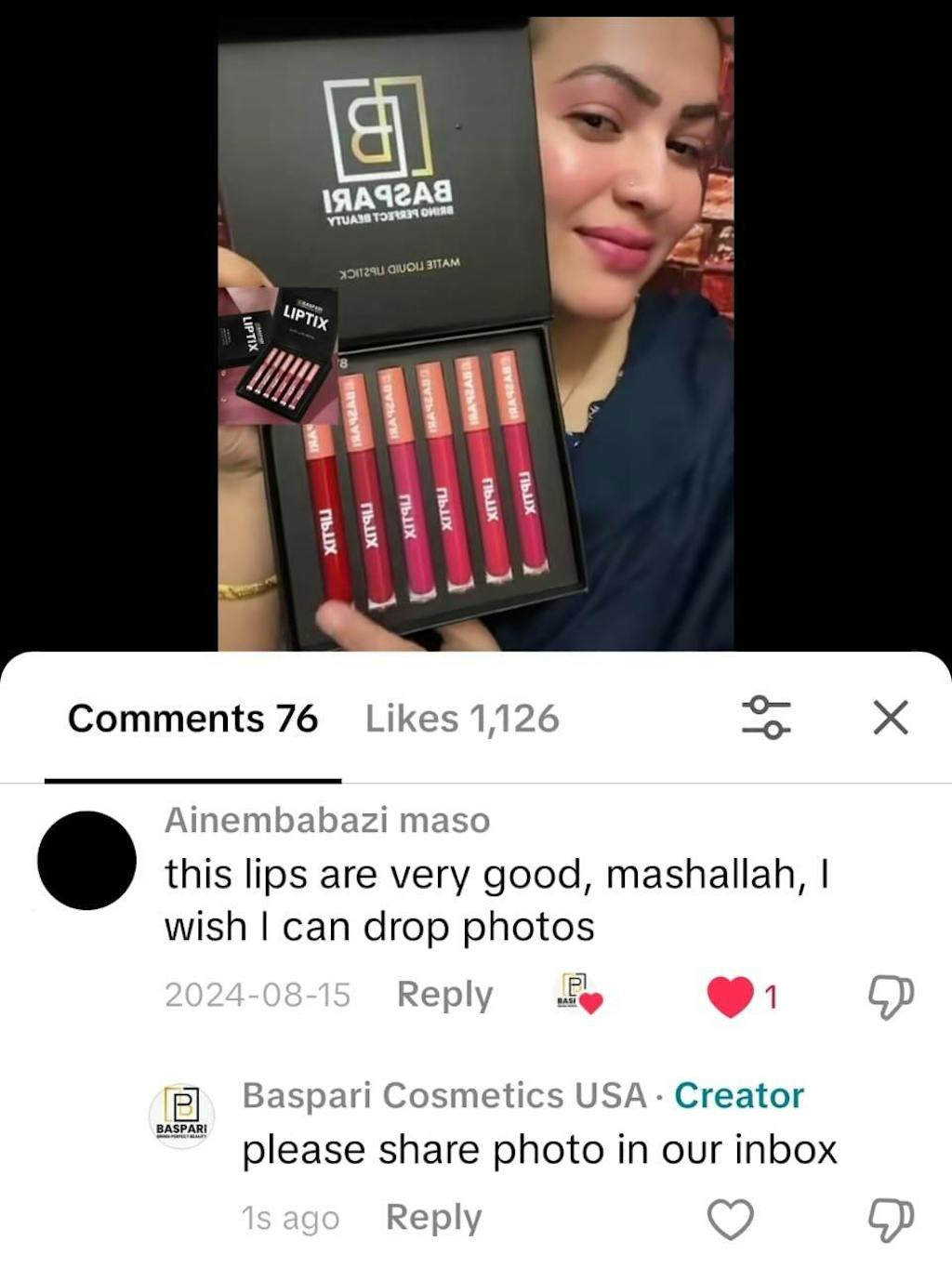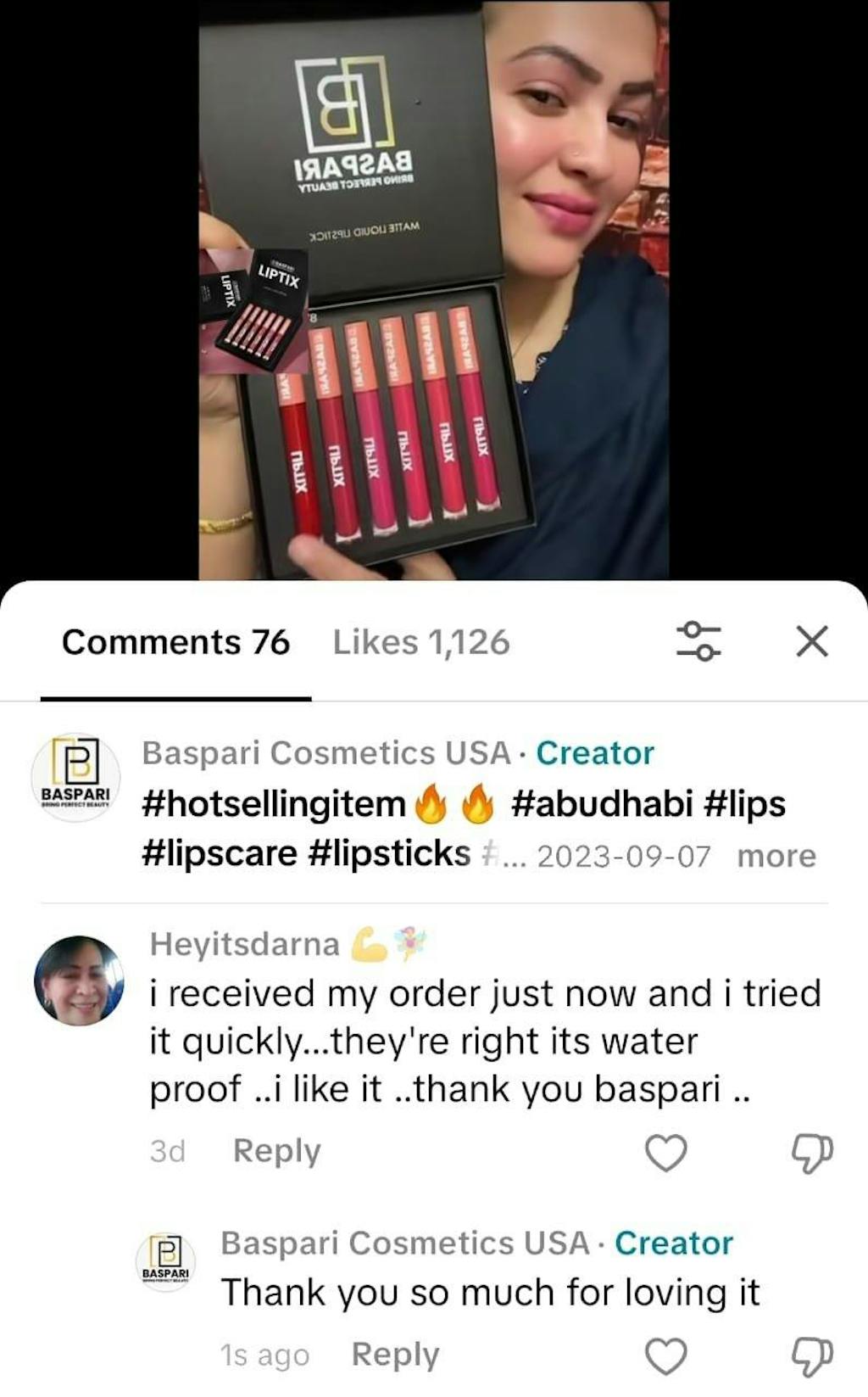 Baspari Matte LIPTIX - Liquid Lipstick Makeup Set of 6 Pcs