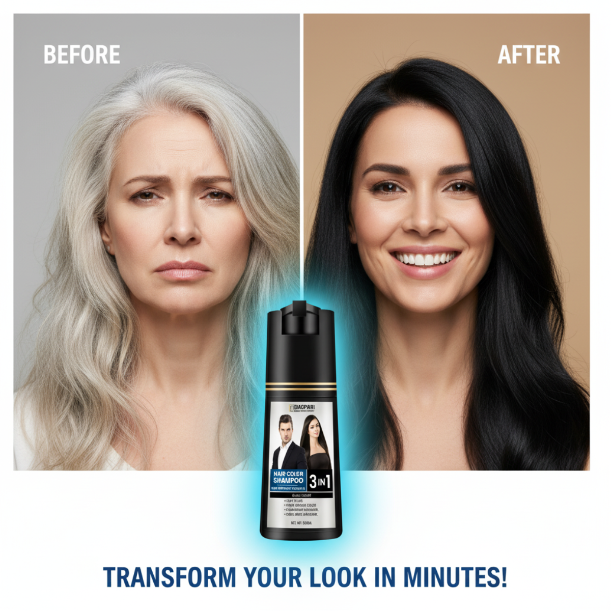 Baspari 3 in 1 Hair Color Dye Shampoo - Best Natural Hair Dye Shampoo for All Hair Types for womens 500ml