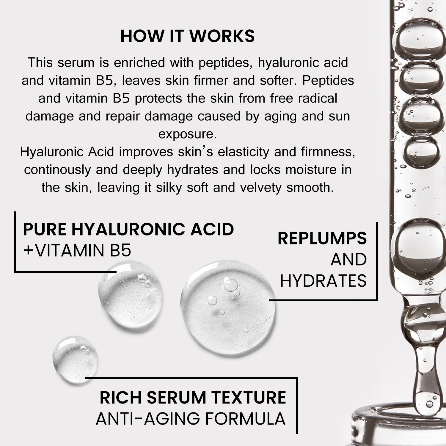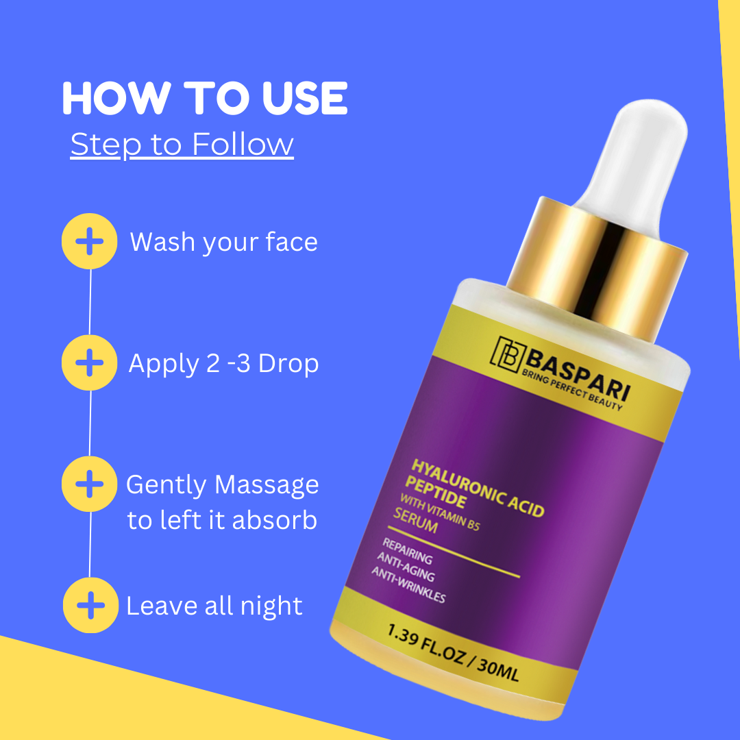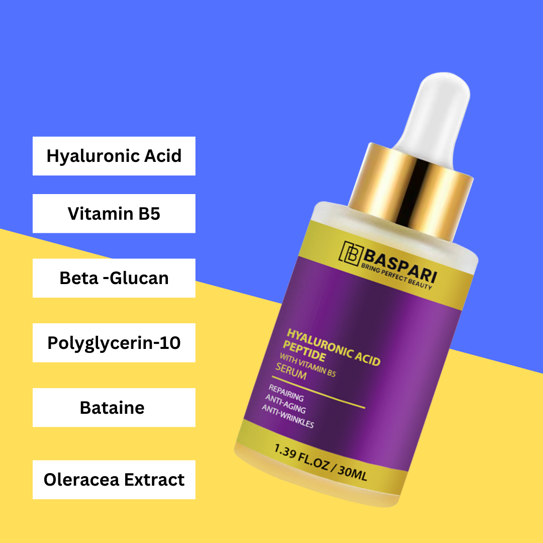 Baspari Hyaluronic Acid with Peptid Serum- Hydrating Serum to Plump and Smooth Skin for All Skin Types,30ml