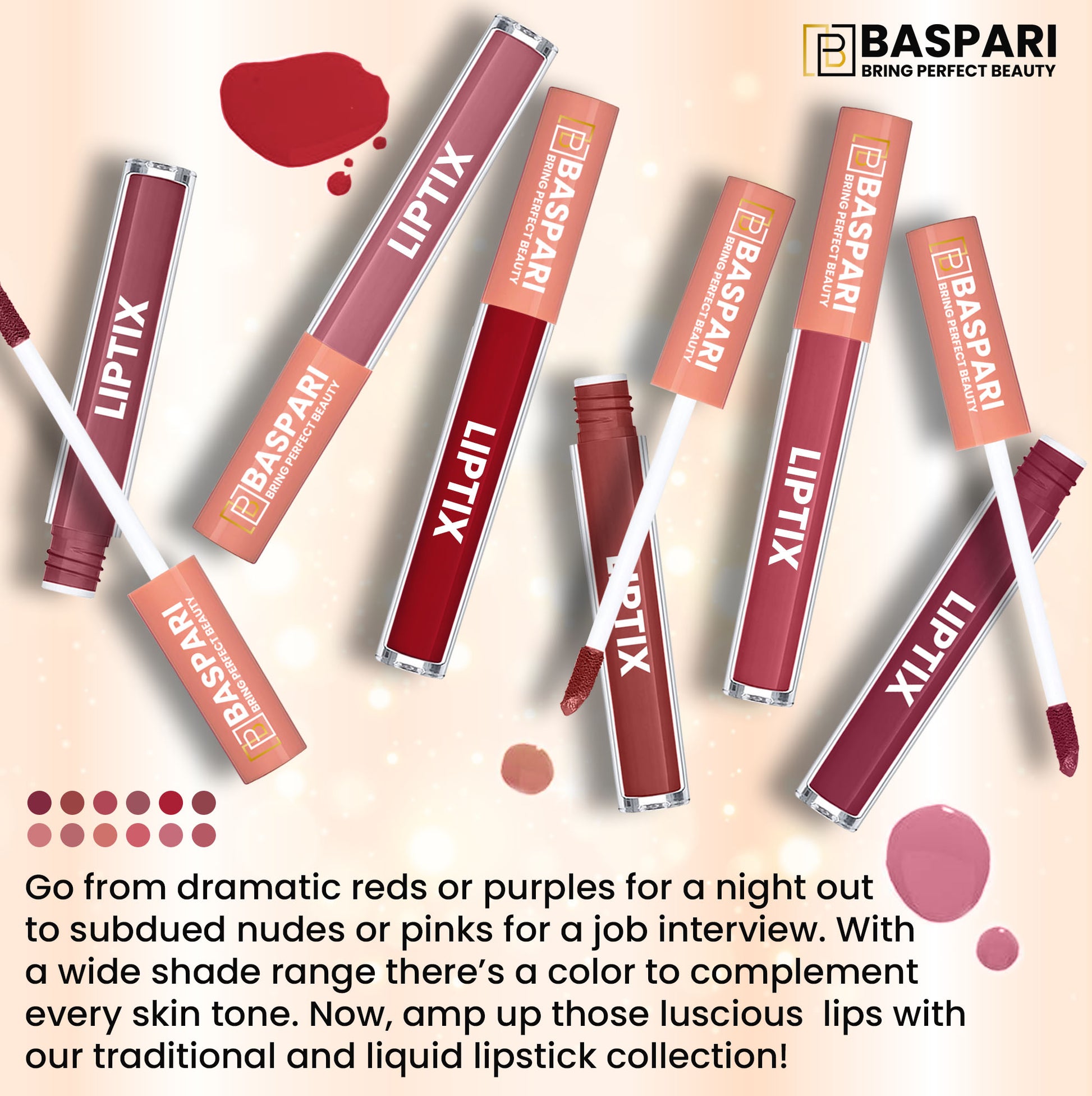 Baspari Matte LIPTIX - Liquid Lipstick Makeup Set of 6 Pcs